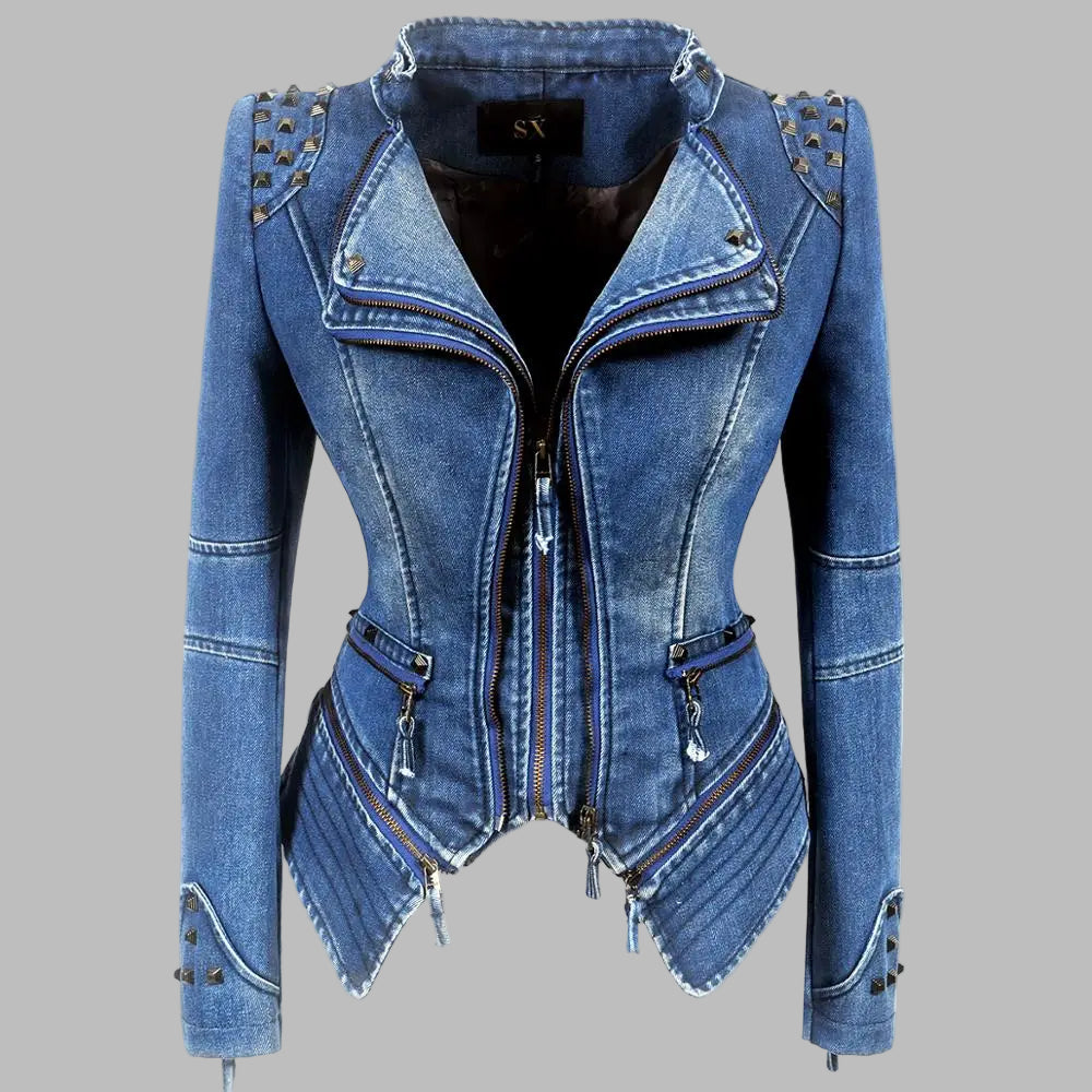 Modrá džínová bunda s cvočky ve stylu punk rock