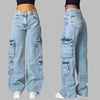 Modré džínové cargo kalhoty s kapsami ve stylu rock baggy