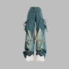 Modré punkové džíny s cargo kapsami a trhaným vzhledem