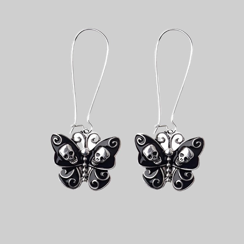 - Dekorace: lebky vyryté na křídlech černého motýla, kovová ozdoba