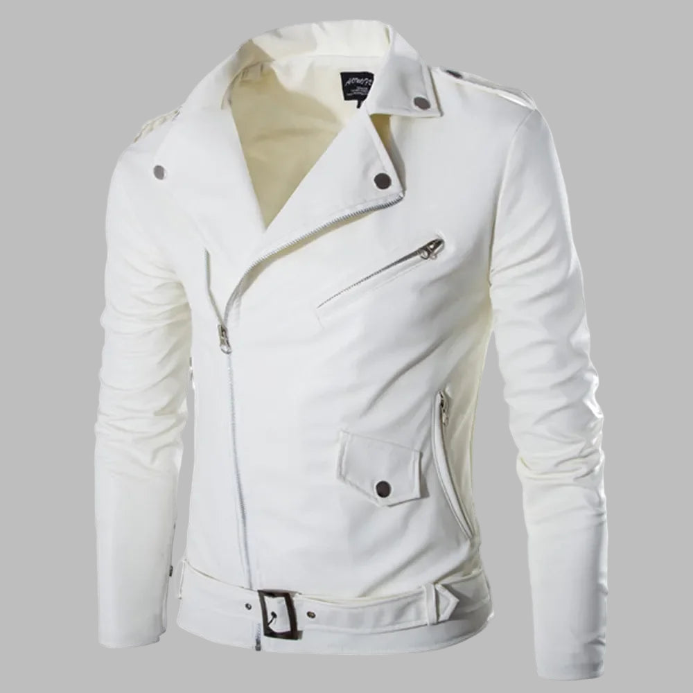 Pánská bílá kožená motocyklová bunda s páskem Zobrazit moznosti