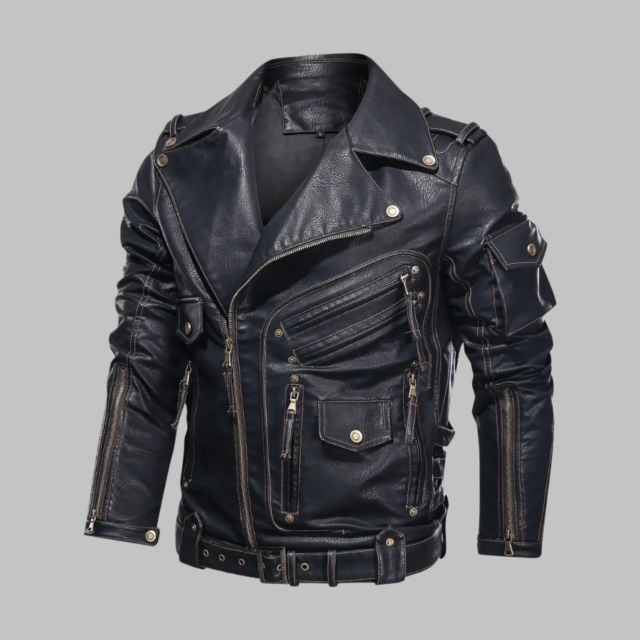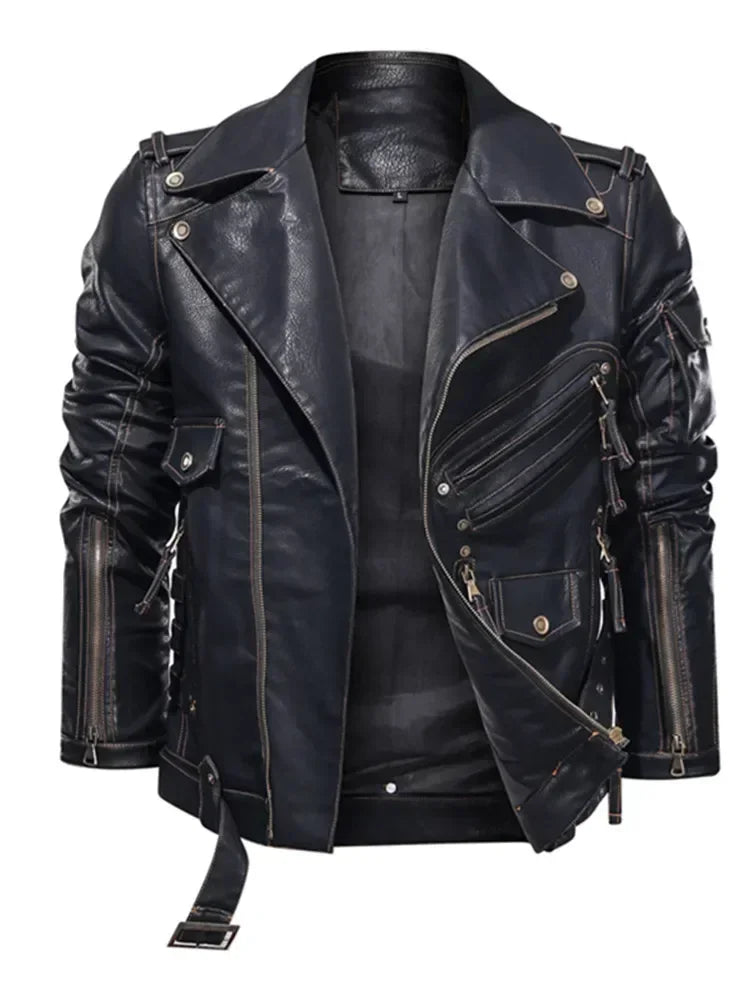 Černá pánská motocyklová bunda z umělé kůže v rockovém stylu
