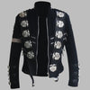 Pánská černá sametová gotická bunda s kovovými ozdobami ve stylu steampunk