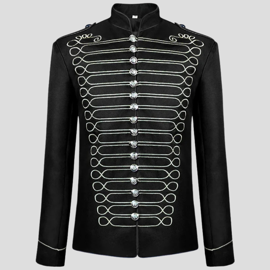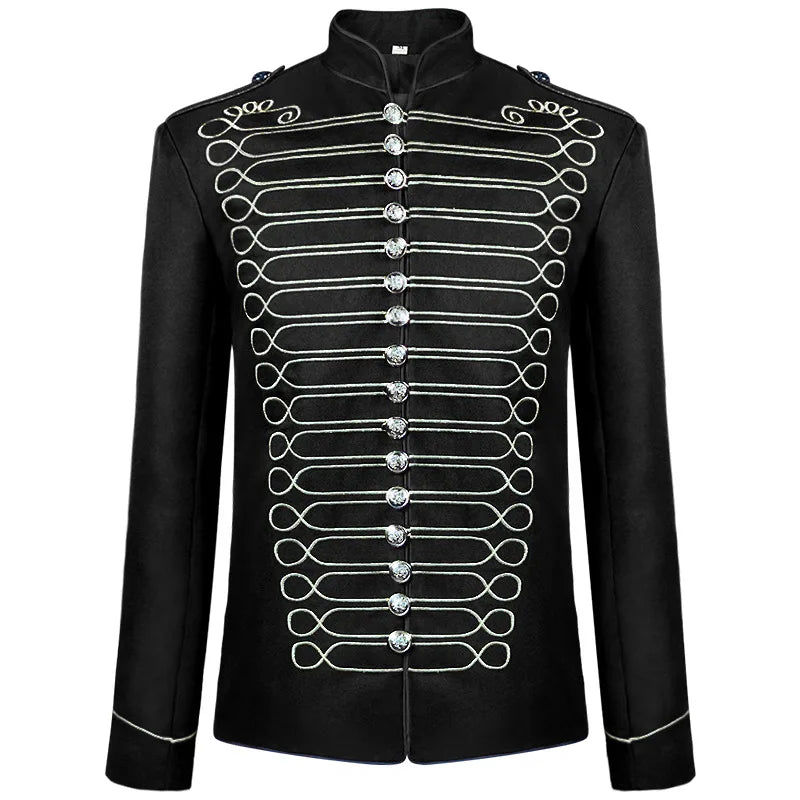 Czarna Kurtka Steampunk z Białymi Ozdobnymi Sznurami Męska
