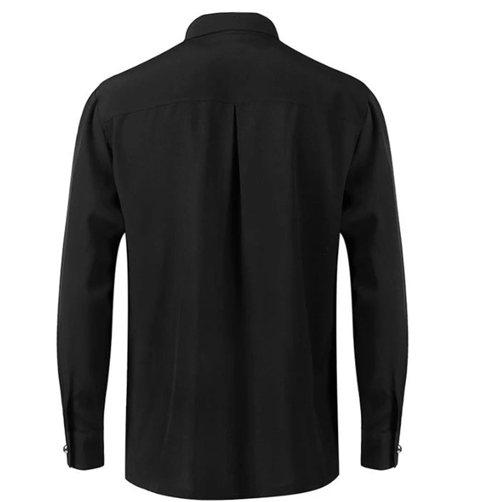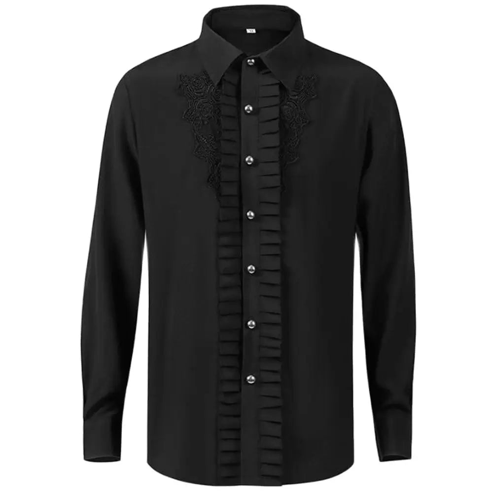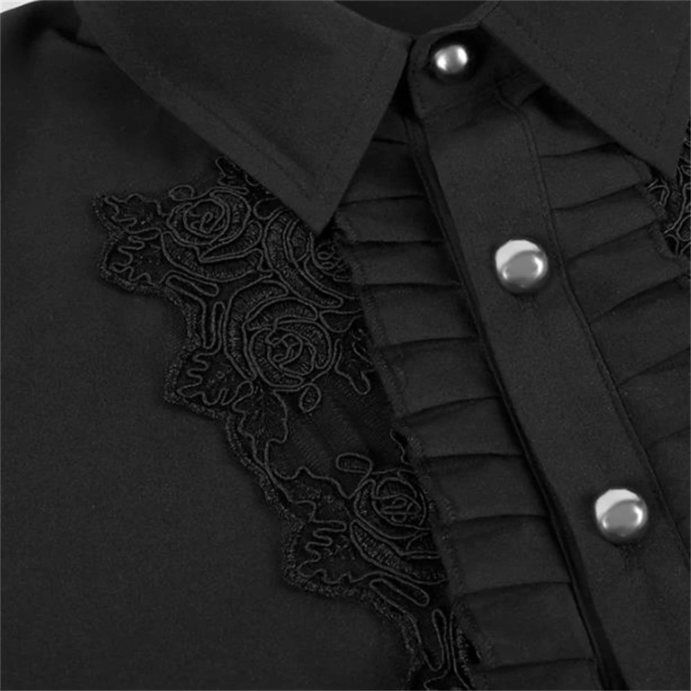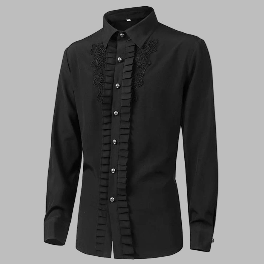 Pánská gotická černá košile s volánem a výšivkou