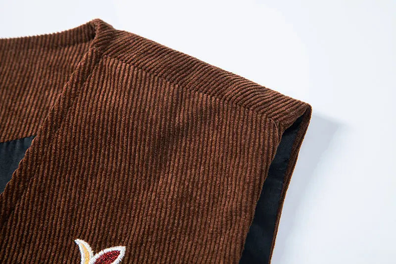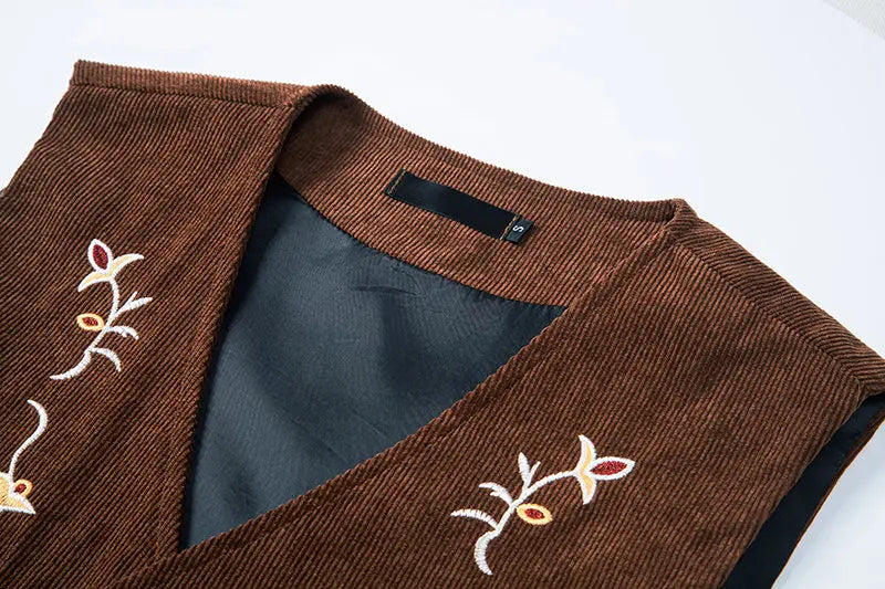 Pánská hnědá steampunk vesta s květinovou výšivkou