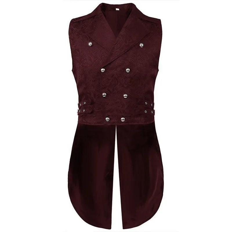 Pánský steampunkový komplet vínovo-černý s krajkou a zlatými detaily XXL