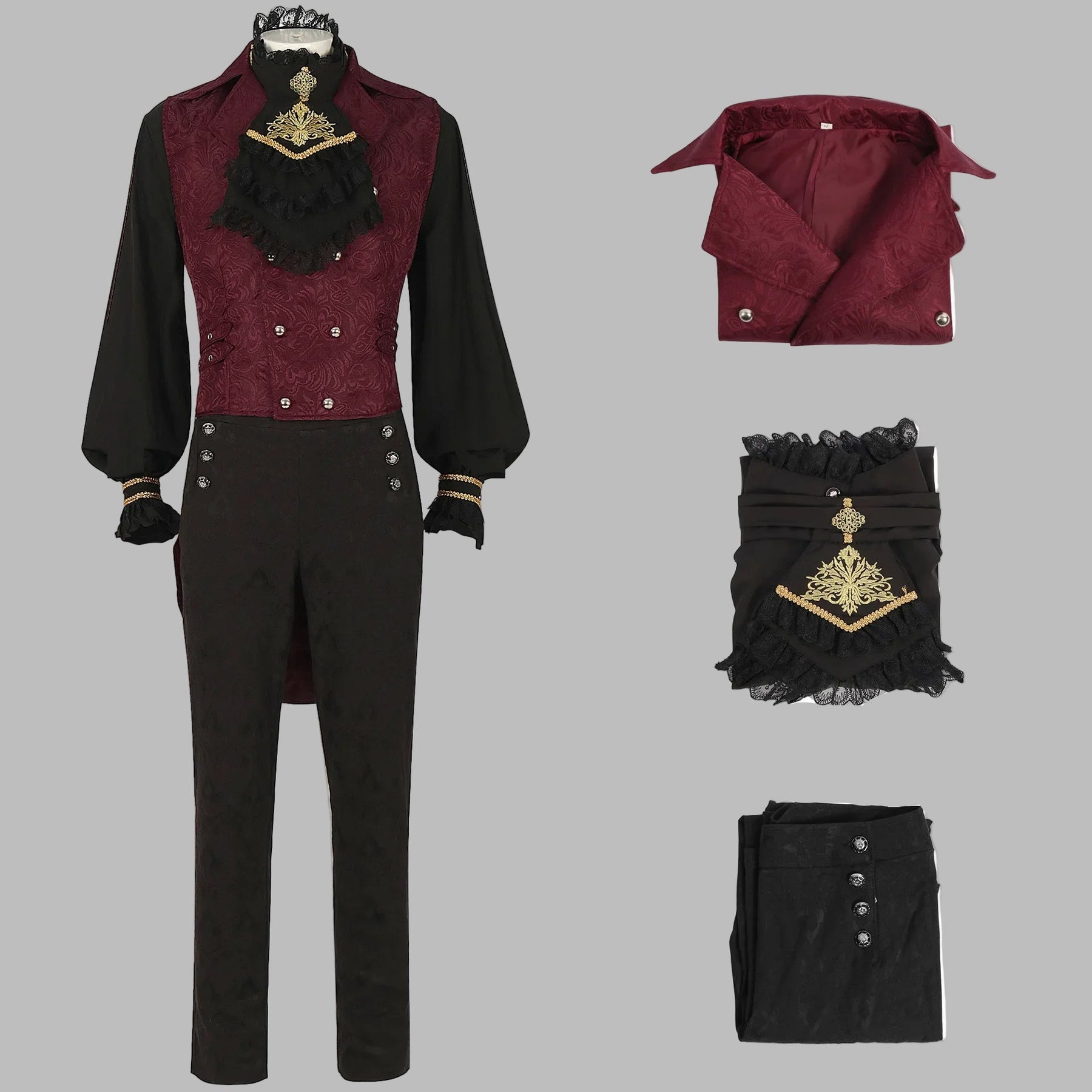 Pánský steampunkový set vínovo-černý s krajkou a zlatými detaily