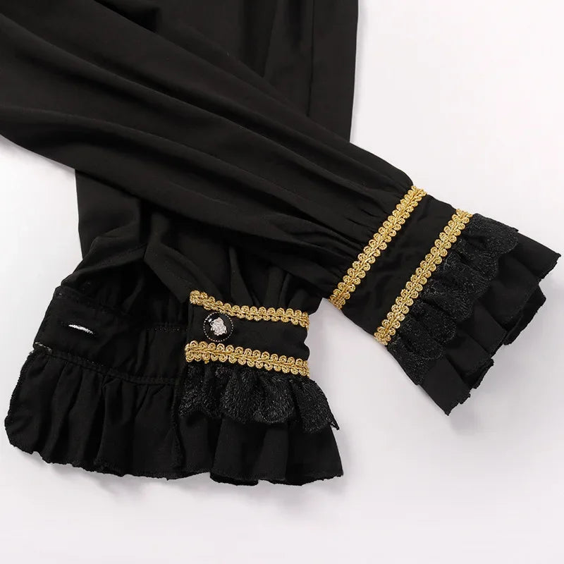 Pánská steampunk sada vínově černá s krajkou a zlatými detaily