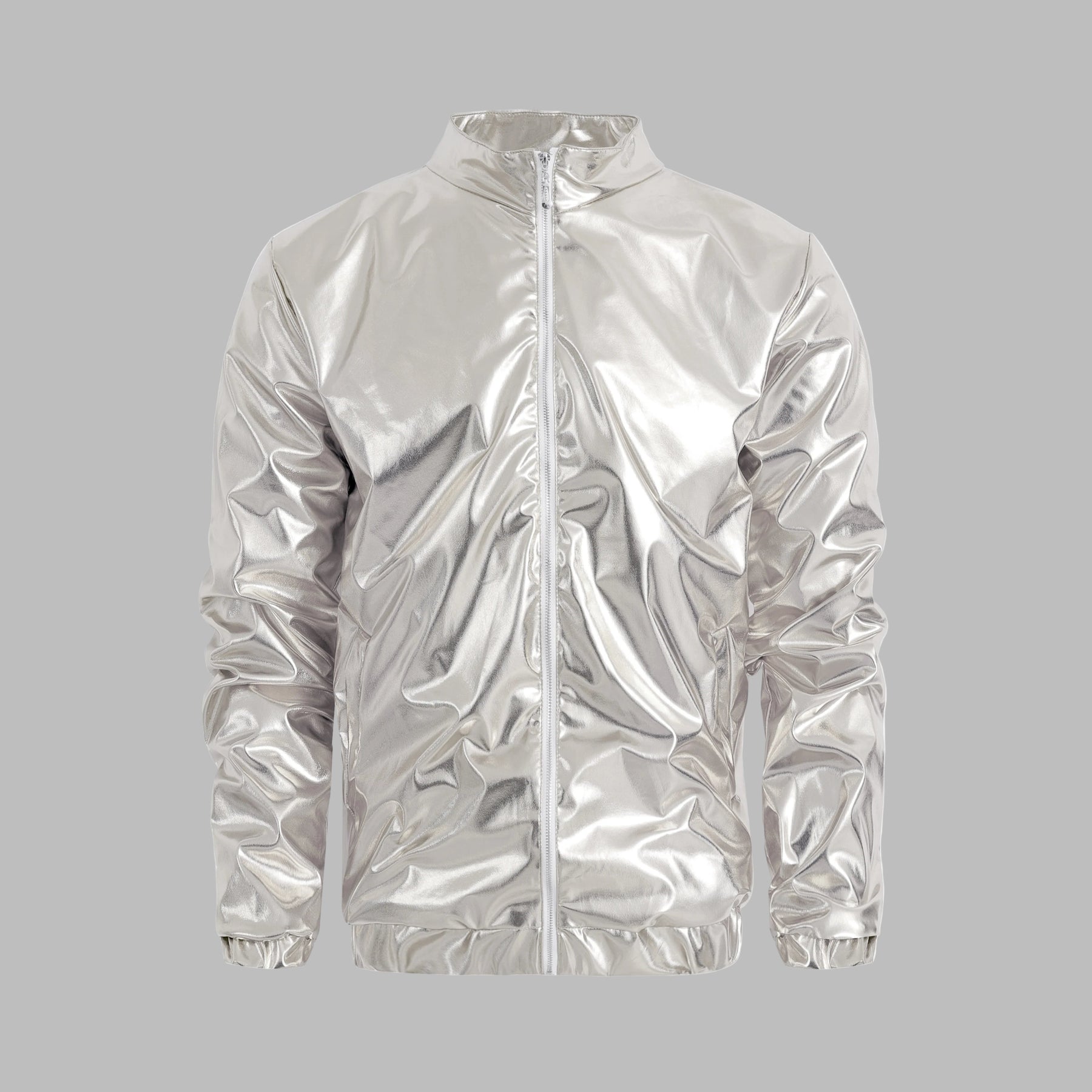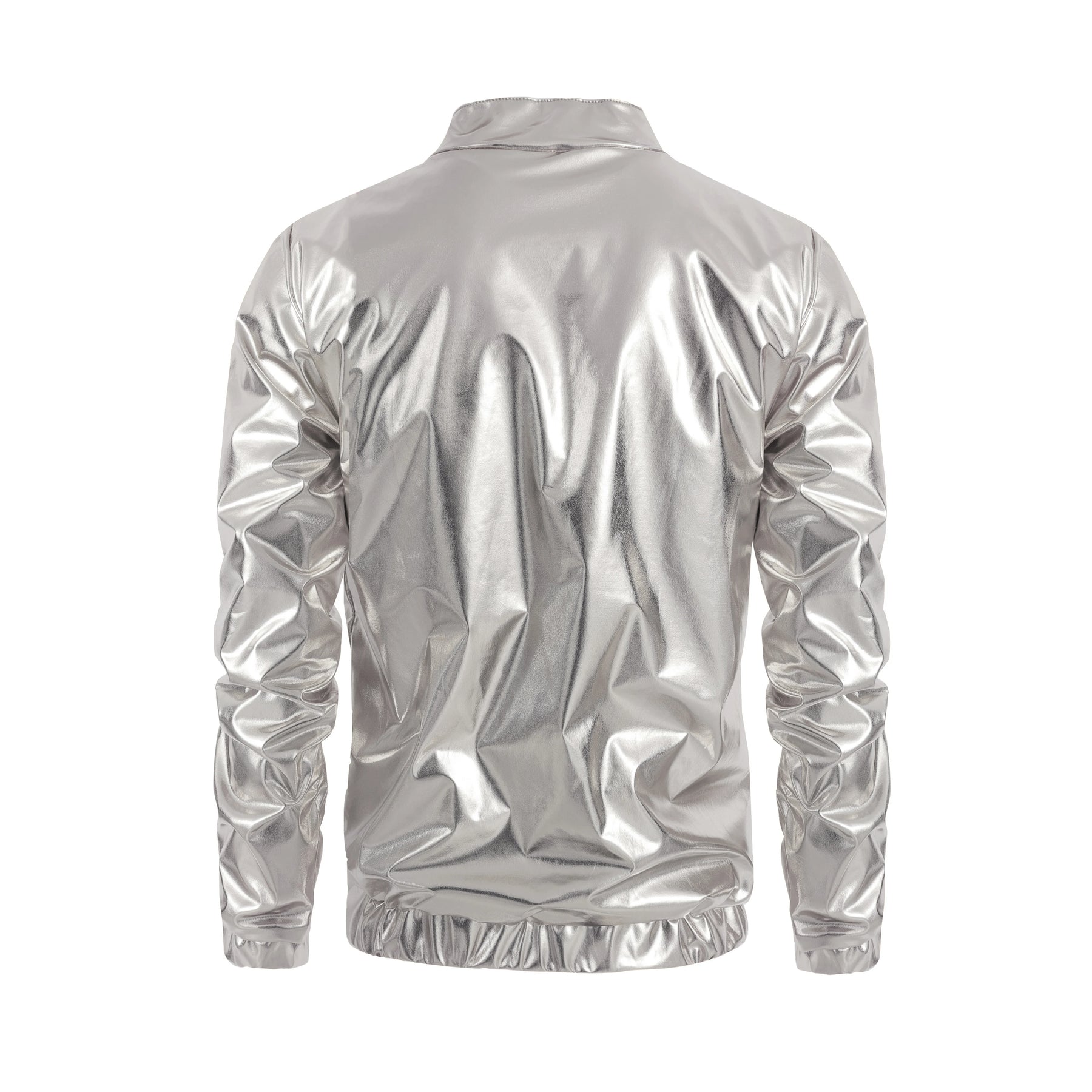 Pánská stříbrná lesklá rocková metalická bomber bunda