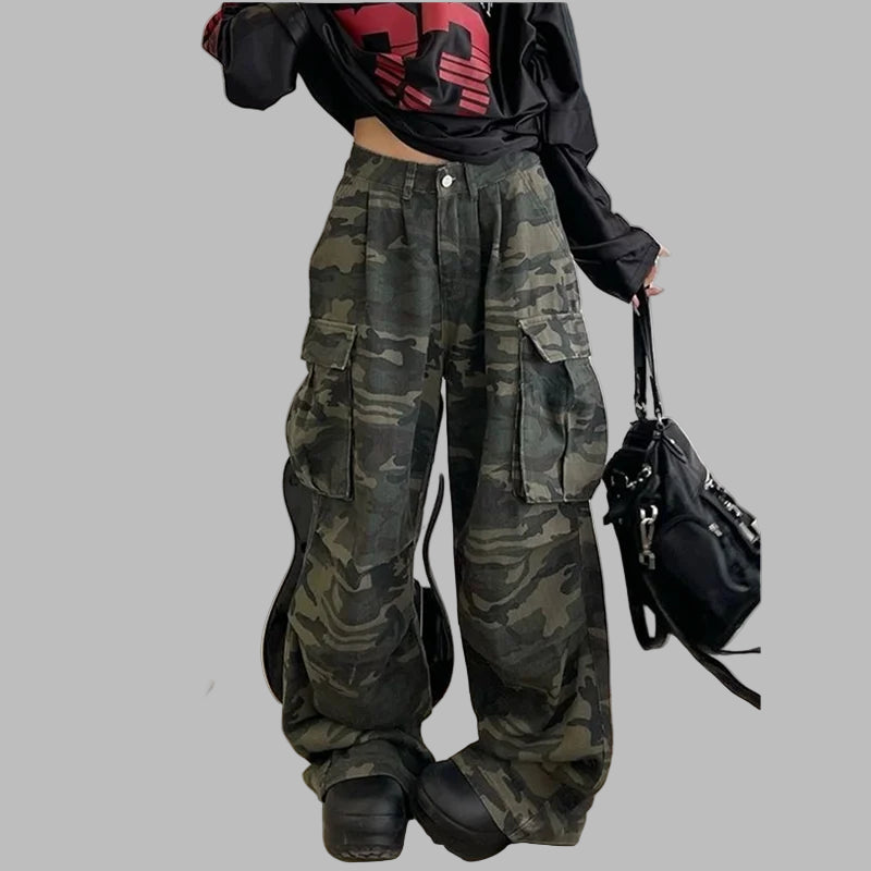 Pánské široké cargo kalhoty punk grunge vojenský maskáčový vzor