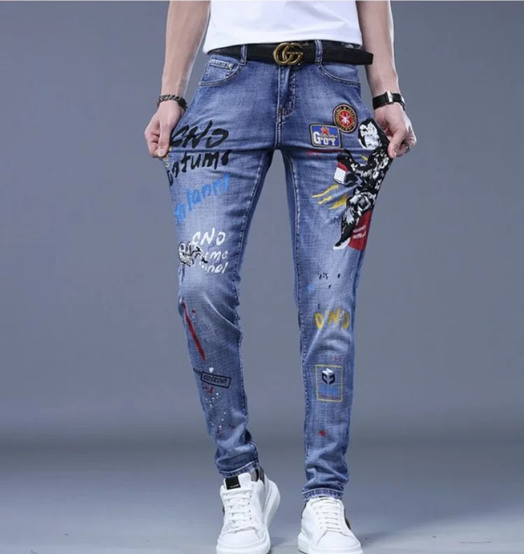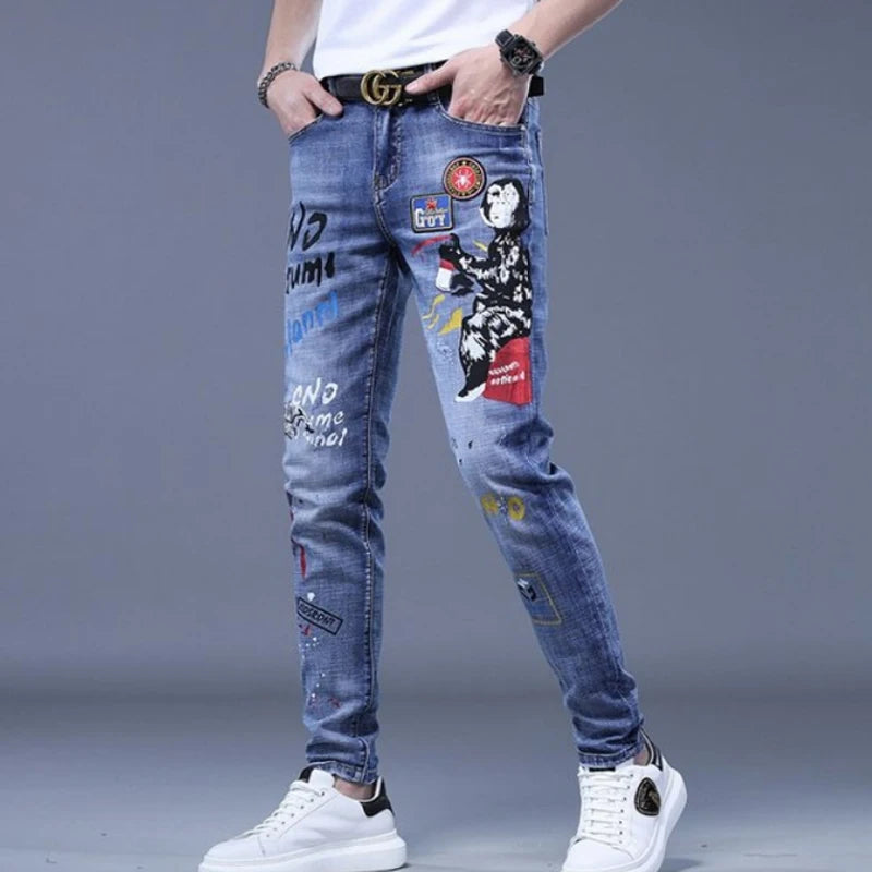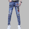 Punk Rock modré džíny s nášivkami a nápisy Zobrazit moznosti