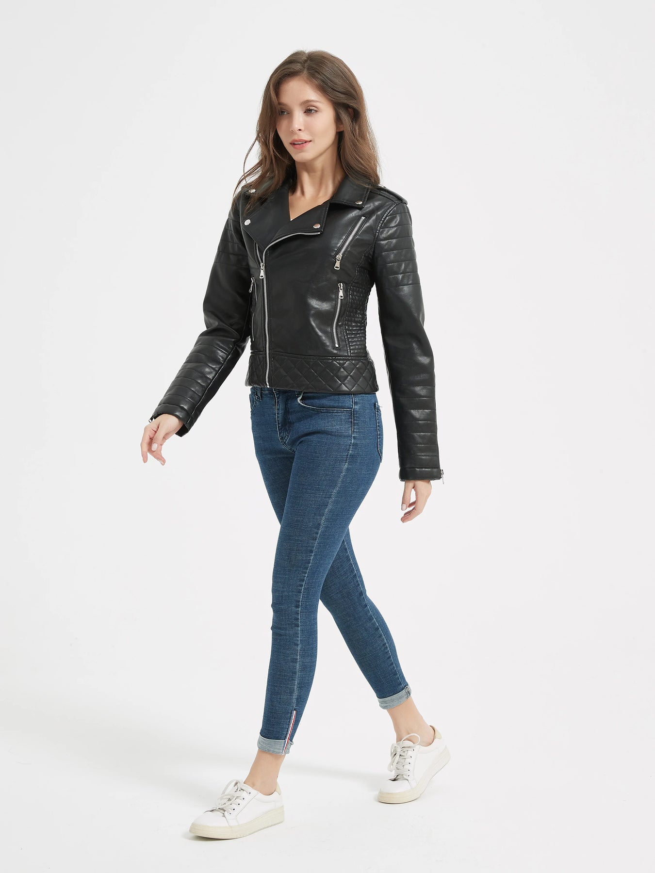 Punková kožená bunda s prošívanými vsadkami Zobrazit moznosti