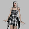 Rock Punk Kostkované Šaty s Kšandami a Šněrováním