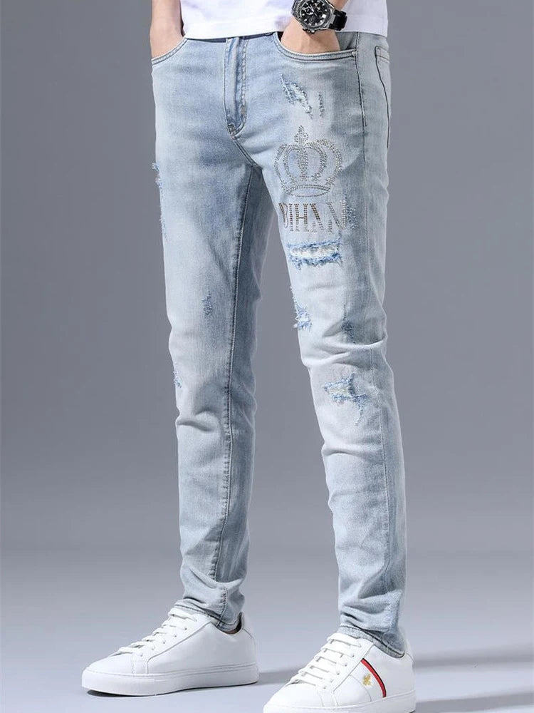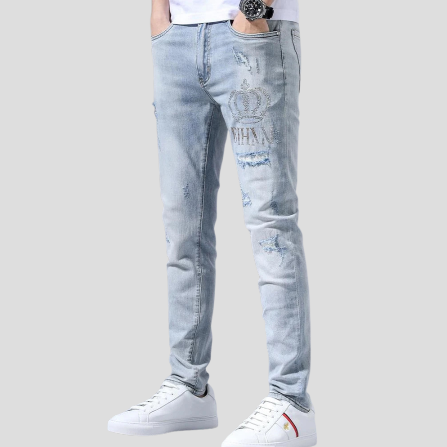 Rock Světle Modré Džíny s Odřením a Korunkou