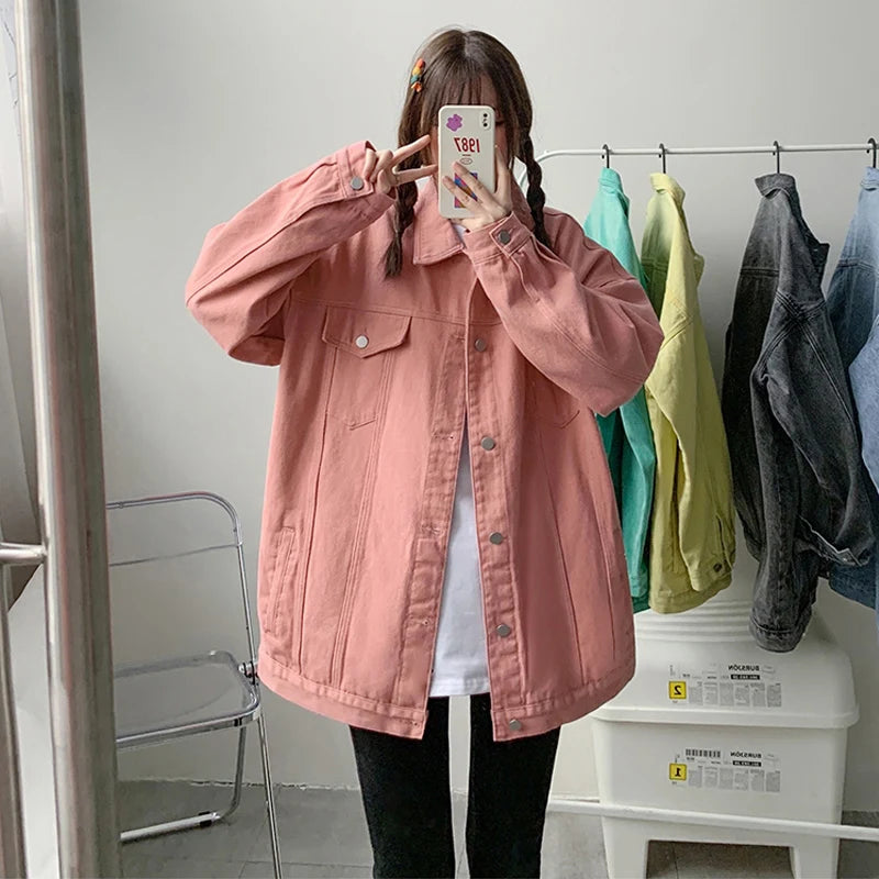 Růžová džínová bunda oversize ve stylu punk rock vintage Zobrazit moznosti