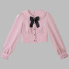 Růžová halenka Jirai Kei s černou vintage mašlí Zobrazit moznosti
