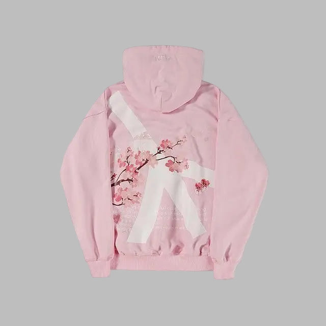 Růžová mikina Jirai Kei s bílými třešňovými květy