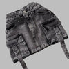 Šedá džínová sukně punk rock s kovovými přezkami a pásky
