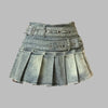 Šedá plisovaná džínová sukně s kovovými pásky punk rock L