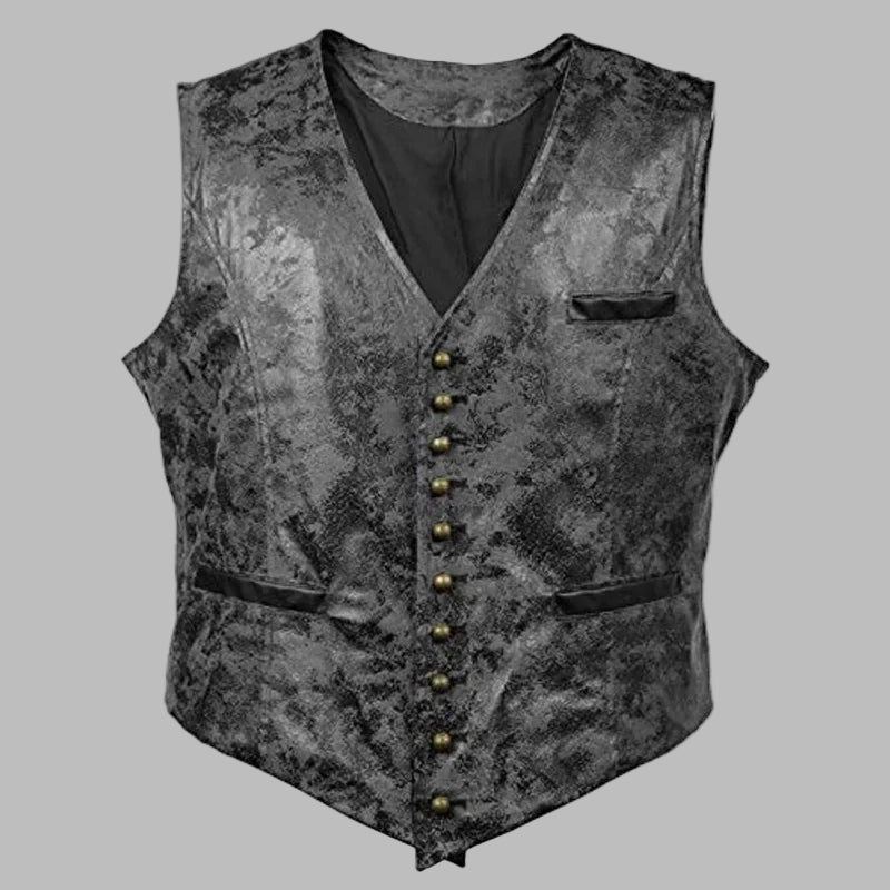 Šedá steampunková vesta s vintage efektem opotřebení Zobrazit moznosti