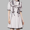 Šedé šaty Jirai Kei s krajkovými vsadkami a mašlí