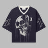 Sportovní síťované tričko s lebkou v metalovém stylu tmavě modré XXL