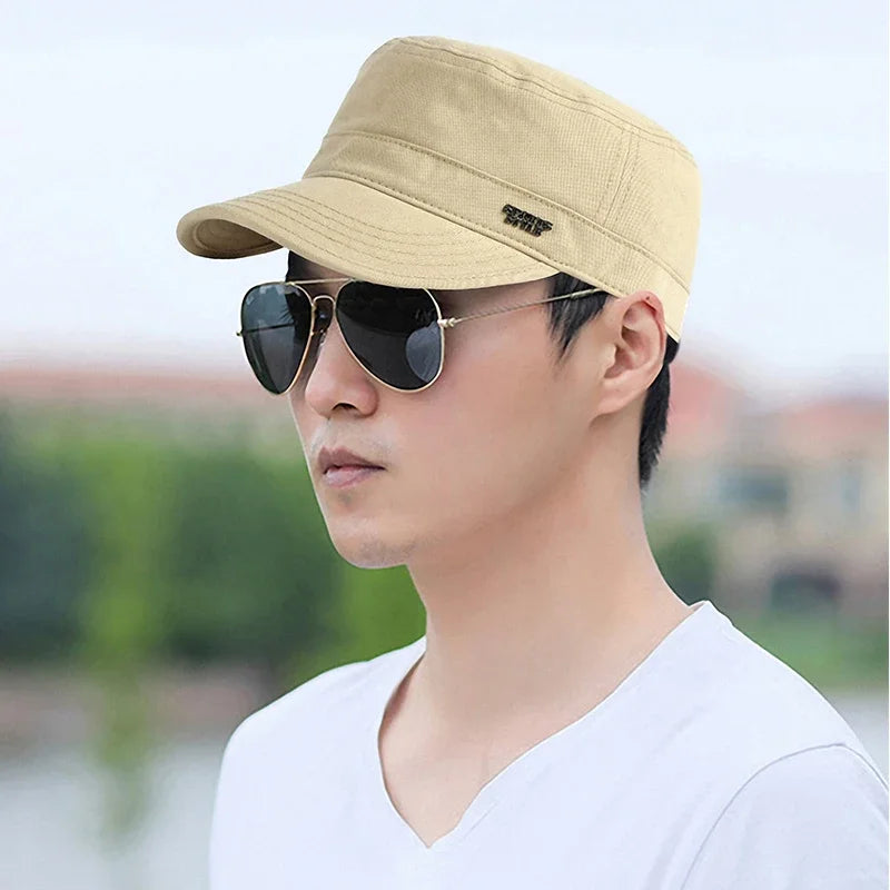 - Vojenský styl s plochým kšiltem