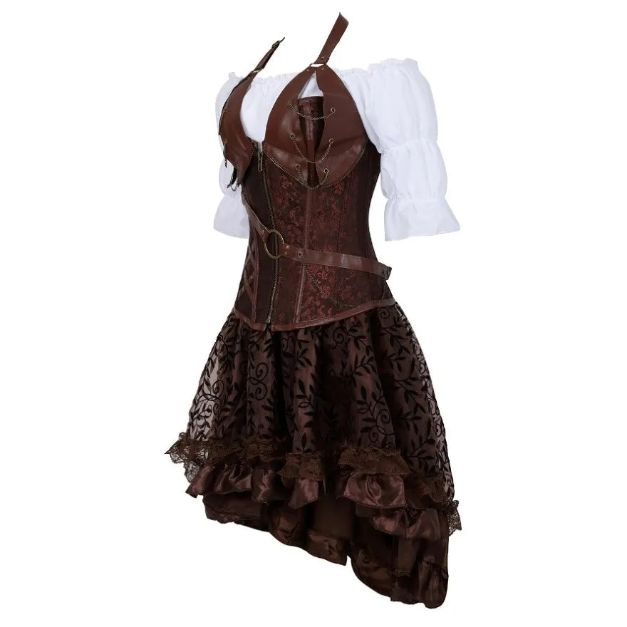 Steampunk hnědé šaty s korzetem a bílými rukávy Zobrazit moznosti