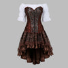 Steampunk hnědé šaty s vyšívaným korzetem a nabíranými rukávy 6XL