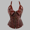 Steampunk hnědý korzet s ramínky a kovovými řetězy