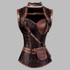 Steampunk korzet hnědý s pásky, přezkami a kapsičkou 6XL