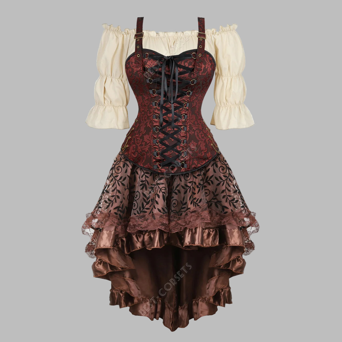 Steampunk šaty s bordovým šněrovacím korzetem a krajkou Zobrazit moznosti
