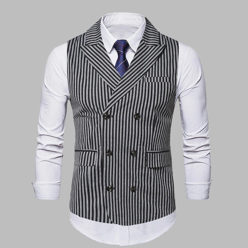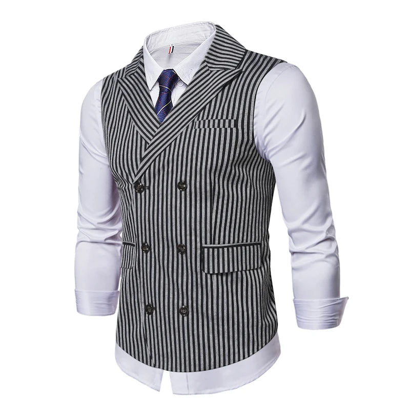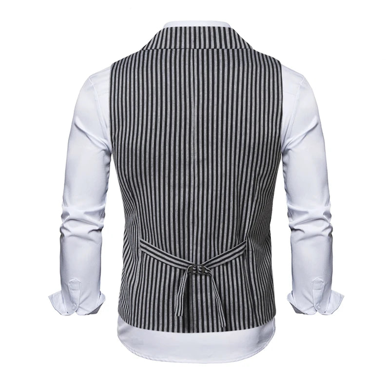 Steampunk vesta s černobílými svislými pruhy a dvouřadým zapínáním