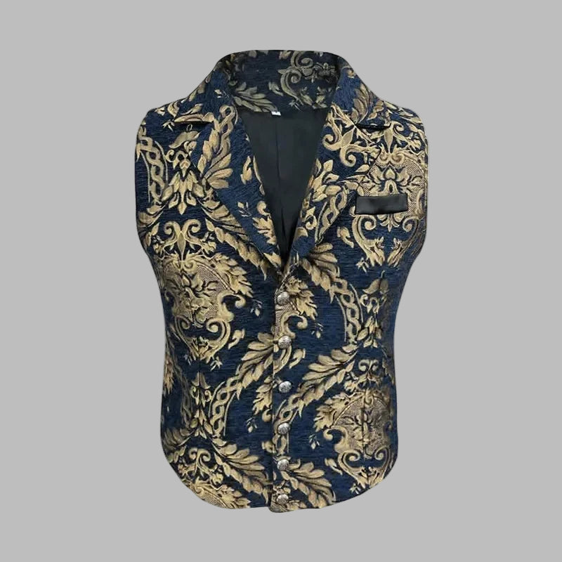 Steampunk vesta s zlatým vzorem tmavě modrá