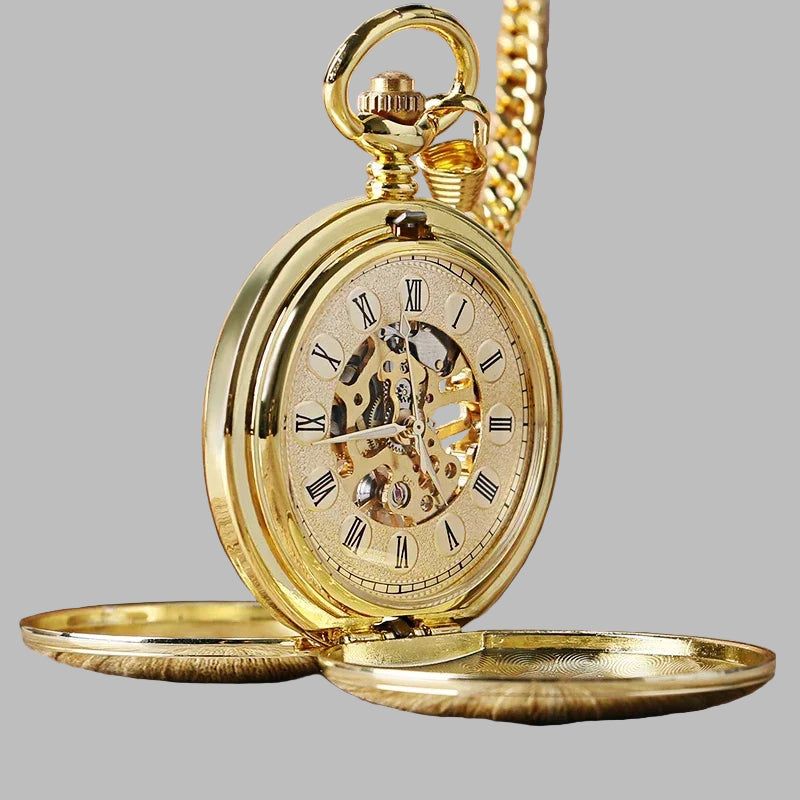 Steampunk kapesní hodinky zlaté s otevřeným mechanismem