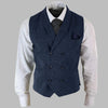 Tmavě modrá steampunková dvouřadá vesta s tradičními kovovými detaily