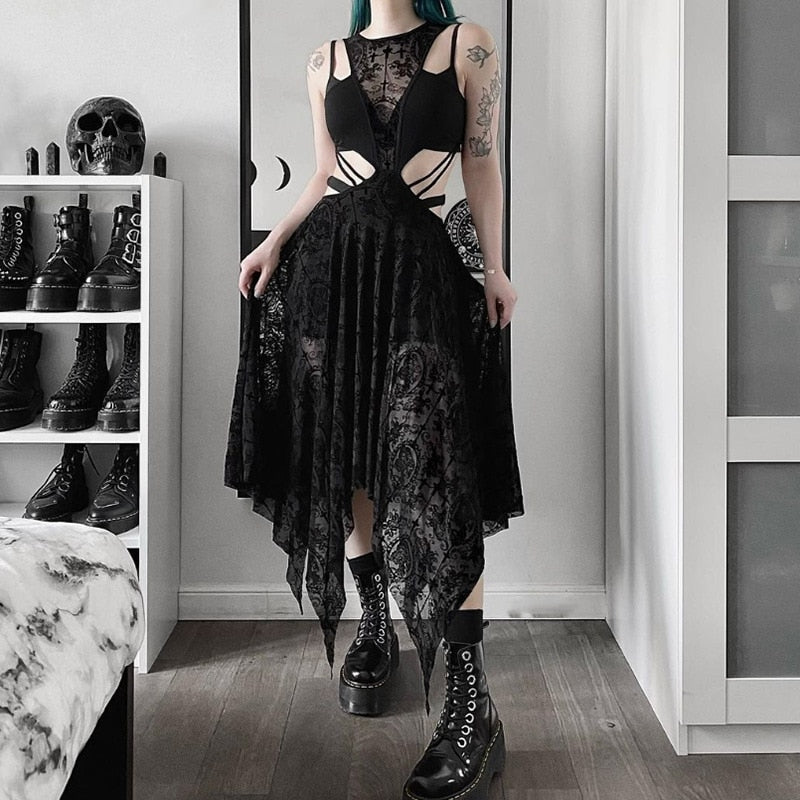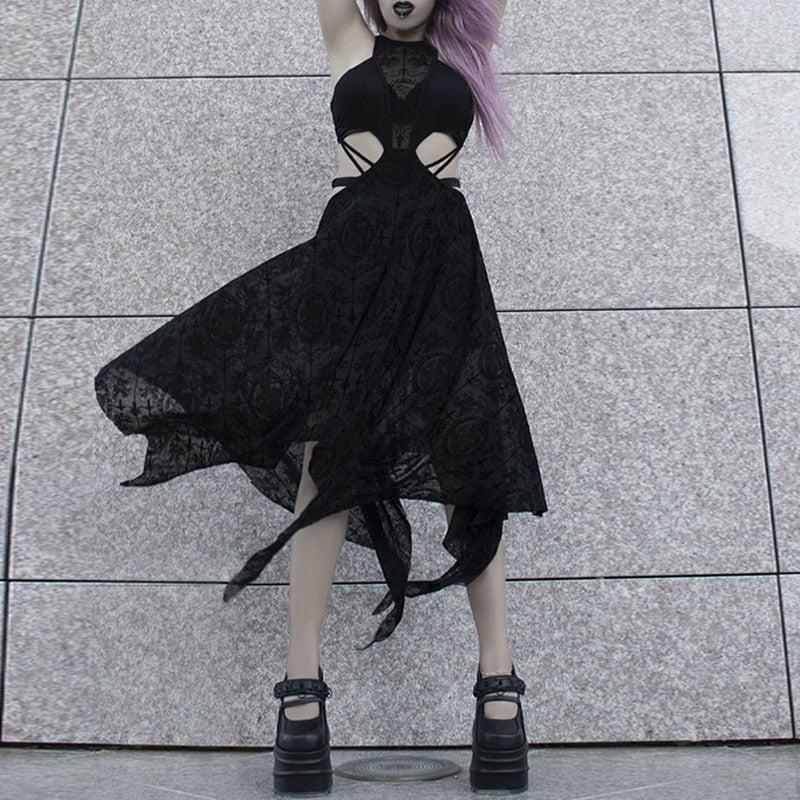 • Letní Pohodlí: Ideální pro teplejší letní dny, tyto šaty sahající do poloviny lýtek vám umožní cítit se volně, zachovávajíce gotickou eleganci.