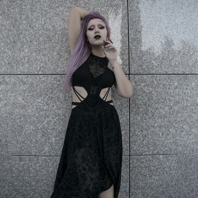 • Výjimečné Materiály: Vyrobené z vysoce kvalitní směsi syntetických vláken, tyto šaty nabízejí výjimečný komfort, zatímco zachycují temnou esenci gotického stylu.