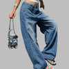Volné modré džíny baggy s širokými nohavicemi rockového stylu